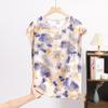 Dam Silke Jacquard Rundhals Kortärmad Tunn Mamma T-shirt Sommar Stor Storlek Blommig Bekväm Andningsbar Mångsidig Lös Topp