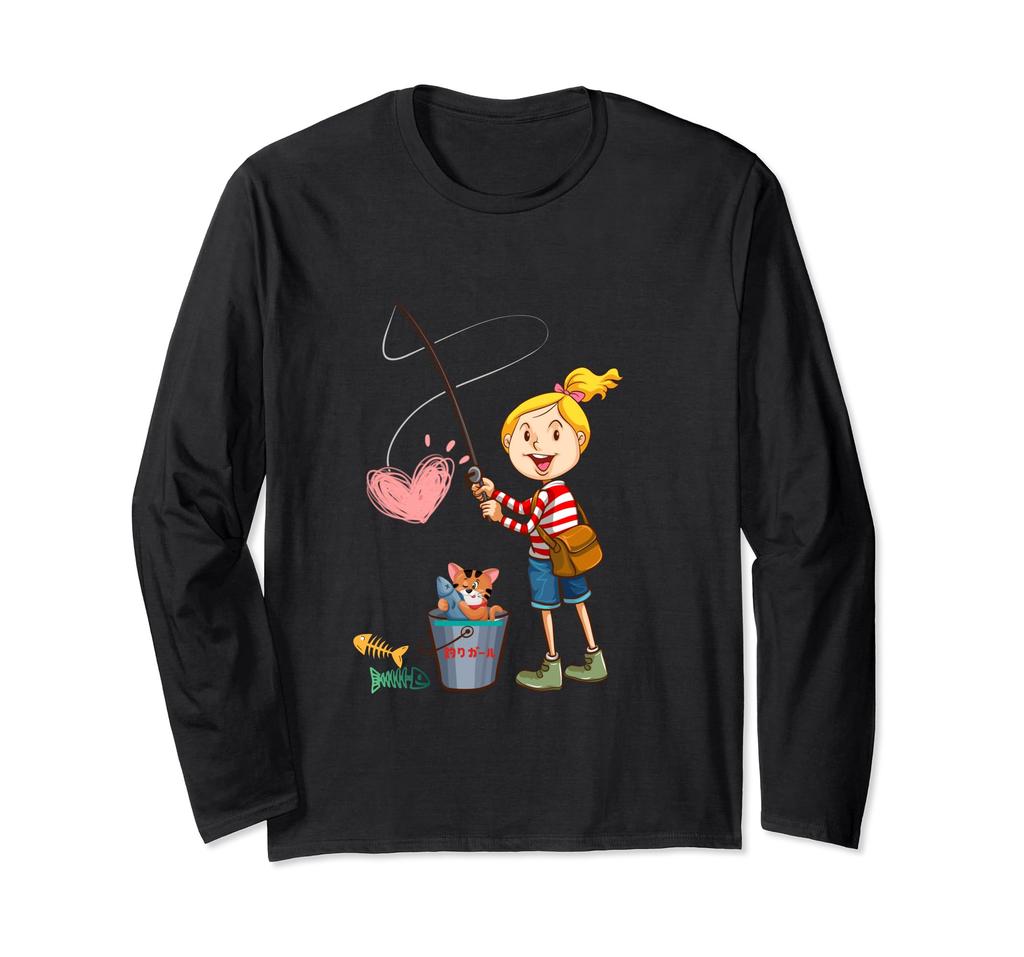 Fiske fiske fiske utomhus sommar rolig tjej, mode, älskare, katt, söt, bär, gåva, kläder, loungewear, hjärta, långärmad T-shirt