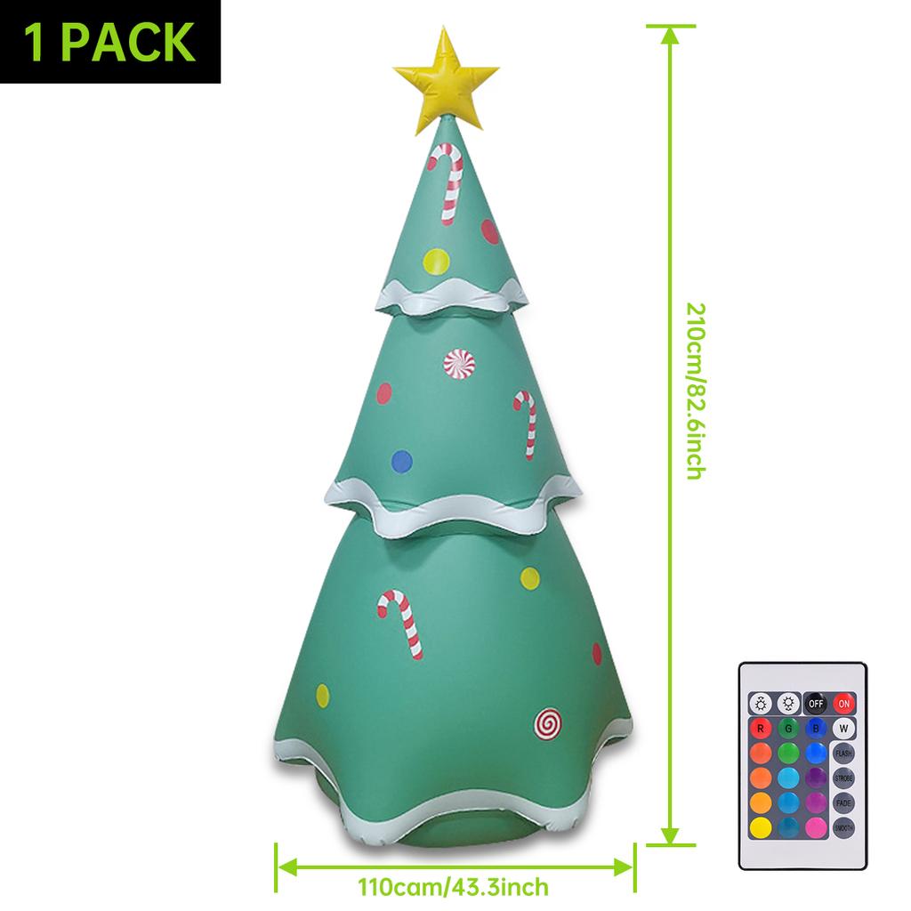 【Giant Inflatable Christmas decorations】--This inflatable 7ft Christmas tree features a bright yellow star on top. Turn on the built-in LED lights at night, the charming light will make this Christmas decoration more eye-catching, creating a joyful holiday atmosphere.