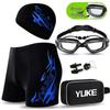 Upplev komfort och stil med dessa badbyxor i plusstorlek för män, med platt ben för en slank silhuett. Dessa badbyxor är tillverkade av högkvalitativ polyester och är både slitstarka och lätta, vilket säkerställer rörelsefrihet i vattnet.. Setet inkluderar matchande simutrustning, med simglasögon och en badmössa för att fullända din simklara look.. Badbyxorna är dekorerade med ett iögonfallande mönster, vilket gör dem perfekta för att sticka ut på stranden eller vid poolen.