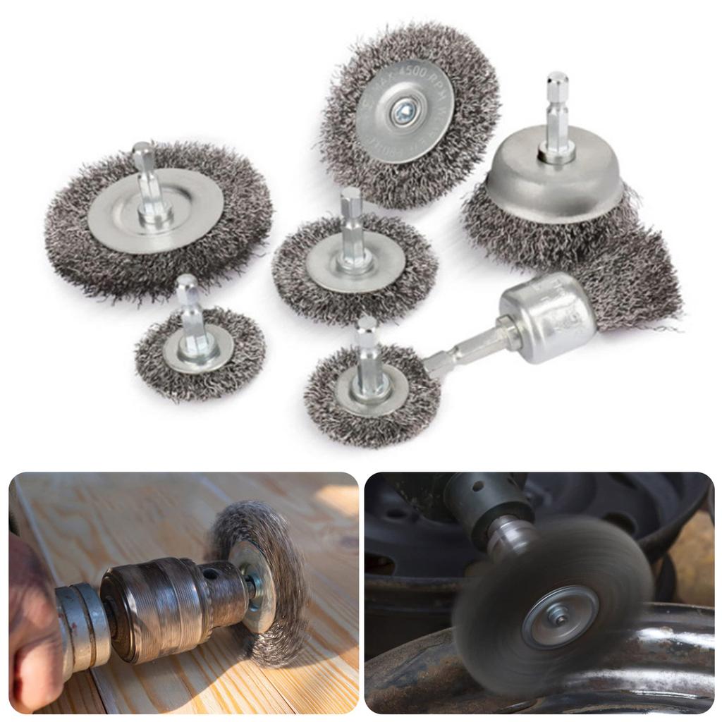 Hex Shank Steel Drill Wire Wheel Brush Set For Clamping 1/4in Electric Drill Efficient Rust Removal Surfaces Treatment