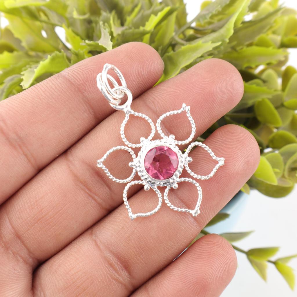 Rosa turmalin 925 massivt sterlingsilverhänge, handgjort ädelstenssmyckehänge, för minnesdagen