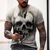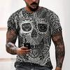 Sommar Rundhals 3D Skalle Tryck Topp Trendiga Casual Kortärmade Herr T-shirts