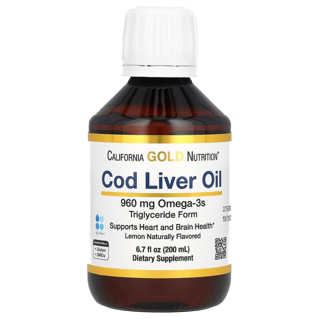 Torskleverolja, Omega-3-fettsyror, EPA, DHA, Vitamin A, D, Norsk, Triglyceridform, Naturlig citronsmak, 200 ml (6.7 fl oz)