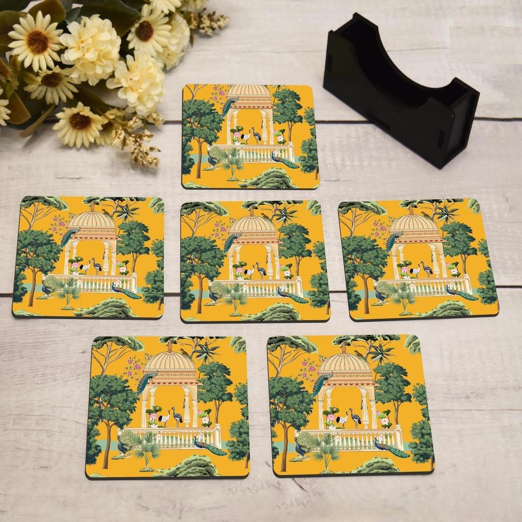 Tea Coasters Set of 6, Beautiful Design with Stand for Tea Cups, Coffee Mugs, and Glasses, Ideal for Diwali Gifting (Eden Garden)