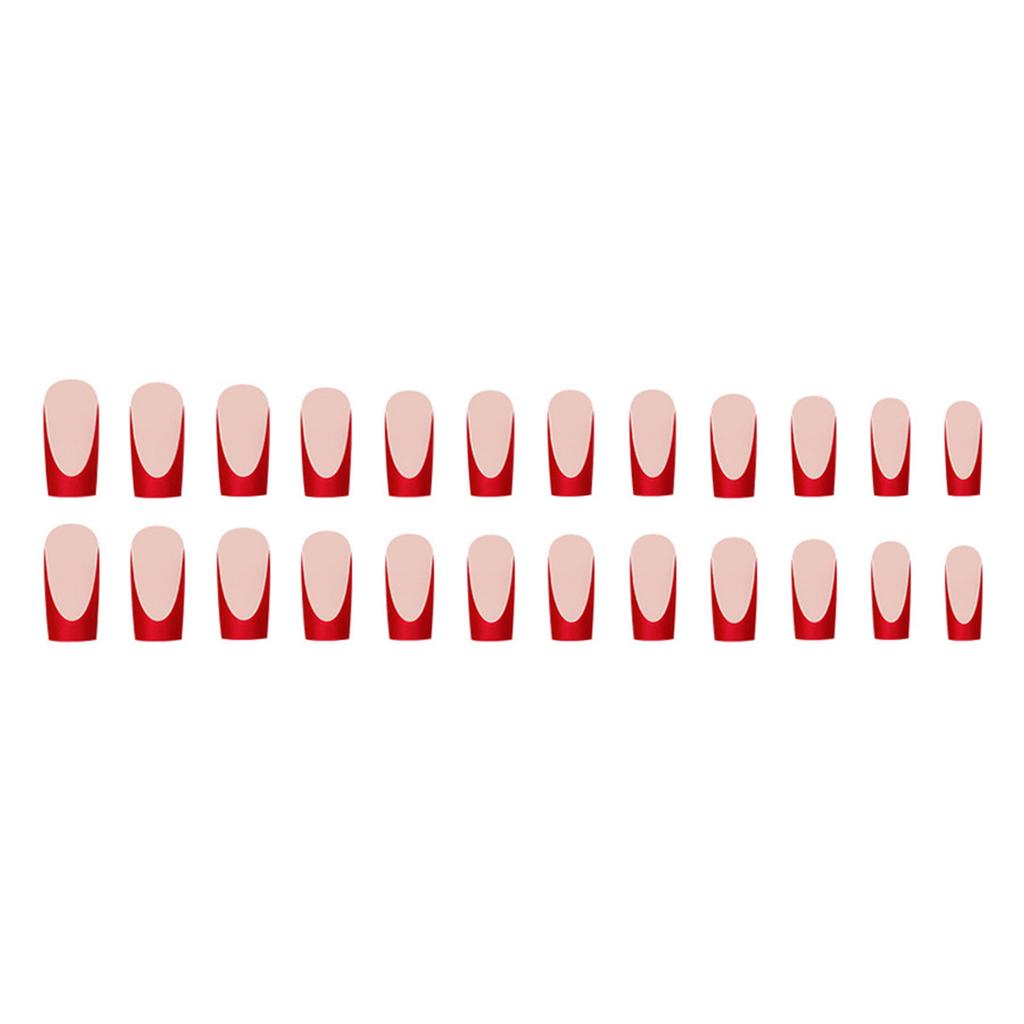 24x French Tip Full Cover False Nail Fashion Press On Nail Long Square Stick On Nail Glossy Acrylic Nail for Daily
