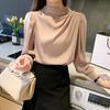 Elevate your wardrobe with this fashionable top, crafted from high-quality polyester for a comfortable feel. Featuring a chic stand collar and long lantern sleeves, this top offers a modern twist on a classic design. The solid pattern and loose fit create a versatile piece, perfect for any occasion. Detailed with unique patchwork and quilted decorations, this top adds a touch of elegance and style to your ensemble.