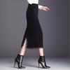 2022 Winter Faux Mink Velvet Midi Skirt with Split and Lace Detail