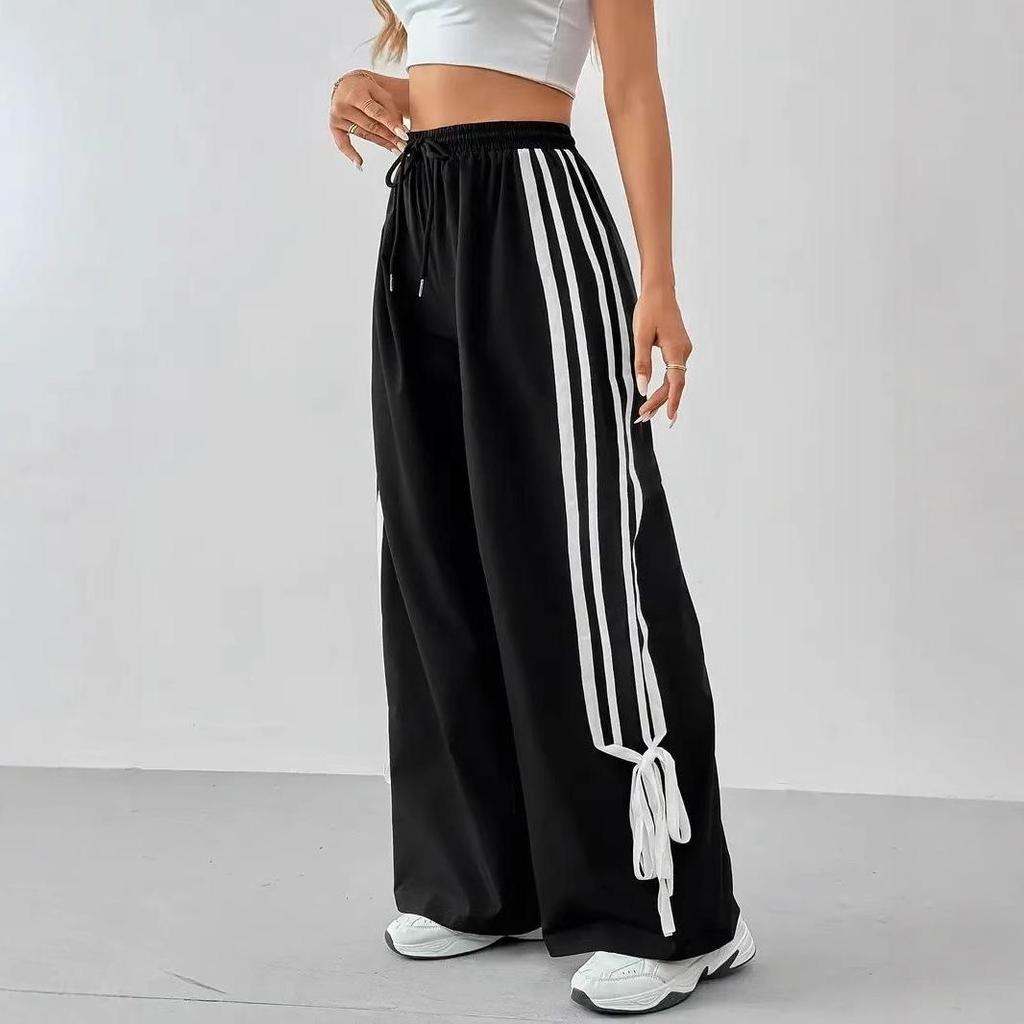 Vi presenterar det senaste inom dammode för vår/sommar 2025-kollektionen, dessa stilfulla byxor har en europeisk och amerikansk känsla med en trendig kontrastfärgsdesign. Tillverkade av högkvalitativ polyester, erbjuder de en lätt och bekväm passform som är perfekt för de varmare årstiderna. Den höga midjelinjen framhäver din silhuett, medan den vida benpassformen ger rörelsefrihet och en avslappnad, ledig stil.. Dessa byxor, som tillför en touch av elegans, är prydda med en charmig rosettdekoration, vilket gör dem till ett mångsidigt tillskott till din garderob för alla avslappnade tillfällen.