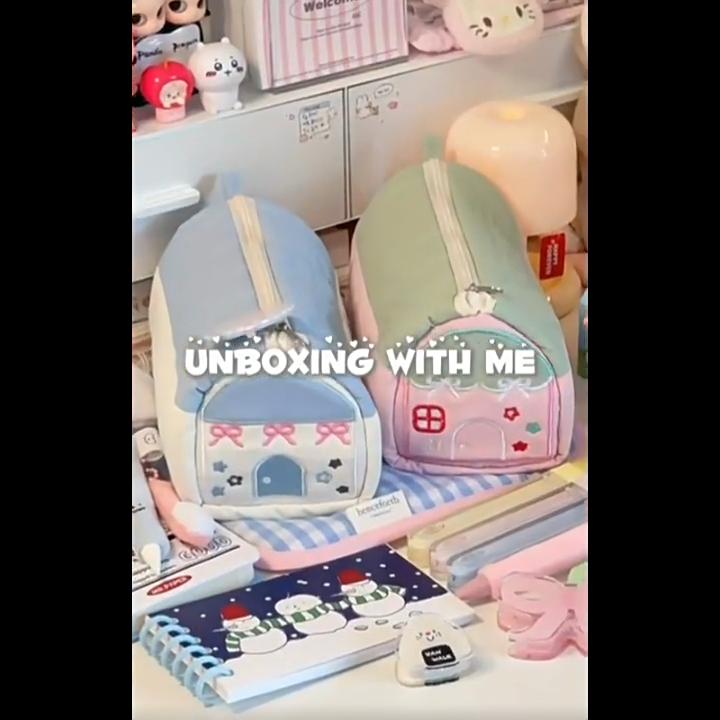 Tecknad pennskrin Stor kapacitet Kontrastfärger Kreativt Husmodellering Multifunktionellt Pennskrin Broderat Pennskrin