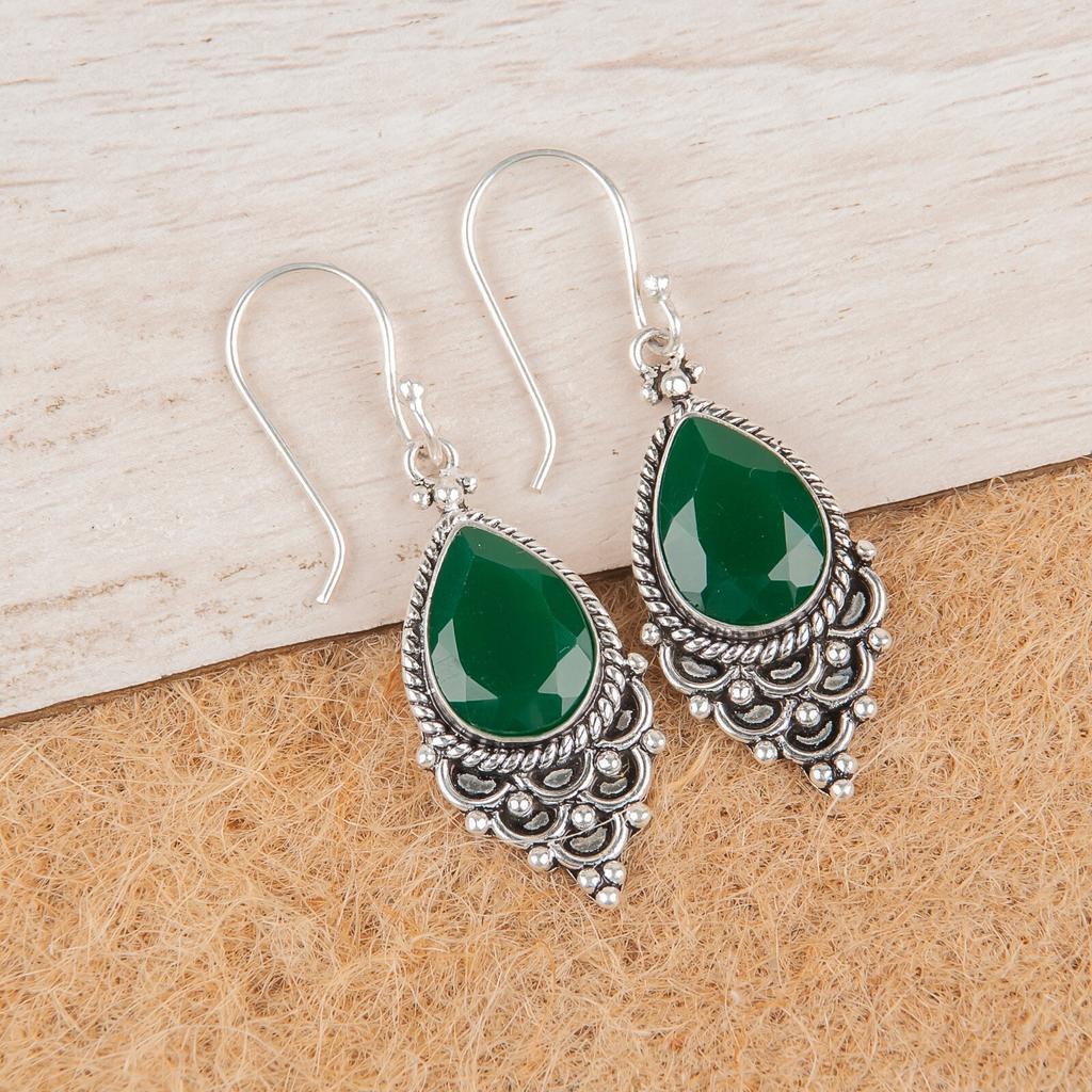 Grön Onyx Ädelsten 925 Sterling Silver Smycken Handgjorda Bröllopsörhängen 1,9" EE-85-16
