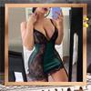 2024 Sexy Lace Mesh Cheongsam Nightgown Set – See-Through Spaghetti Strap Pajamas