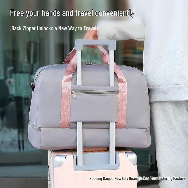 Resväska med hög kapacitet för gränsöverskridande resor med skofack, resväskefäste, hand- och crossbody-bärningsalternativ