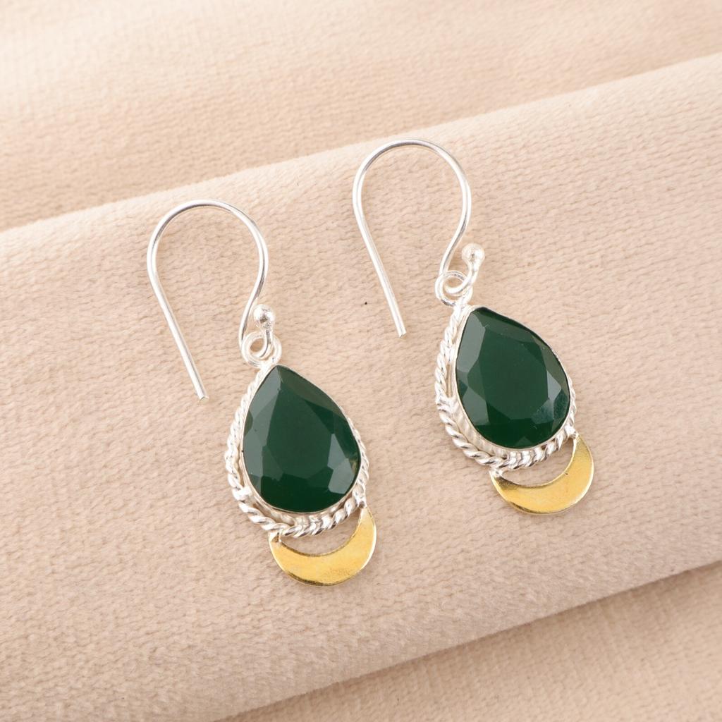 Green Onyx Gemstone 925 Stamped Silver Jewelry Handmade Statement Earrings 1.5" EE-162-15