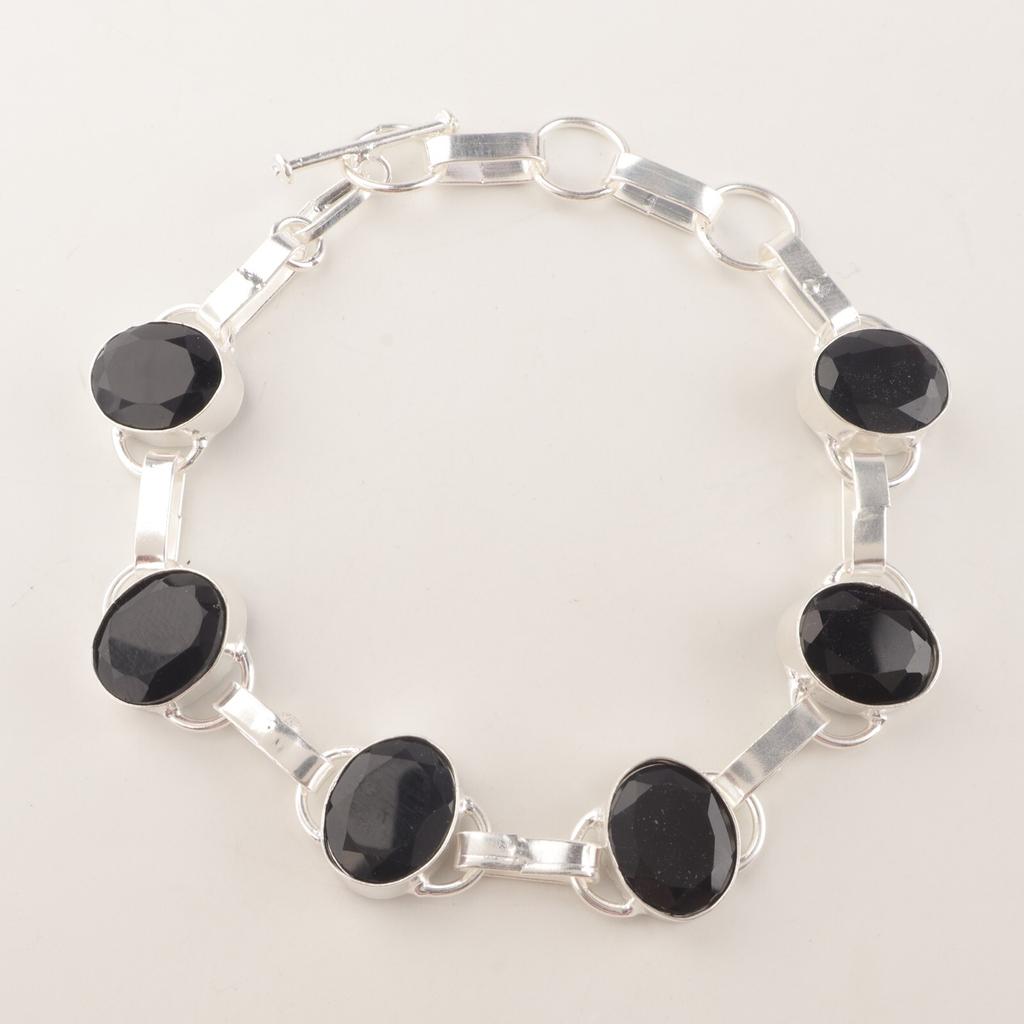 Sällsynt Svart Onyx Ädelsten 925 Sterling Silver Smycke Kedja Armband 9" För Flickor RB-6-