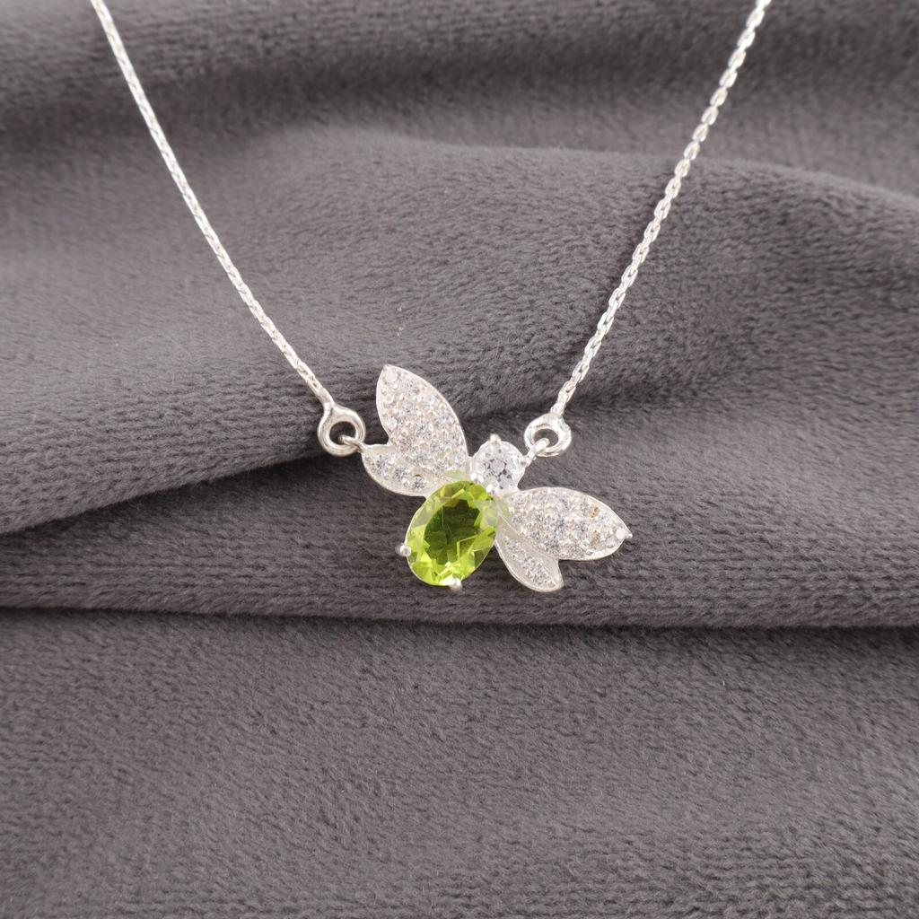 Naturlig Peridot Ädelsten 925 Sterlingsilver Smycken Kvinnor Zirkon Hänge 0,50" CZP-12-9