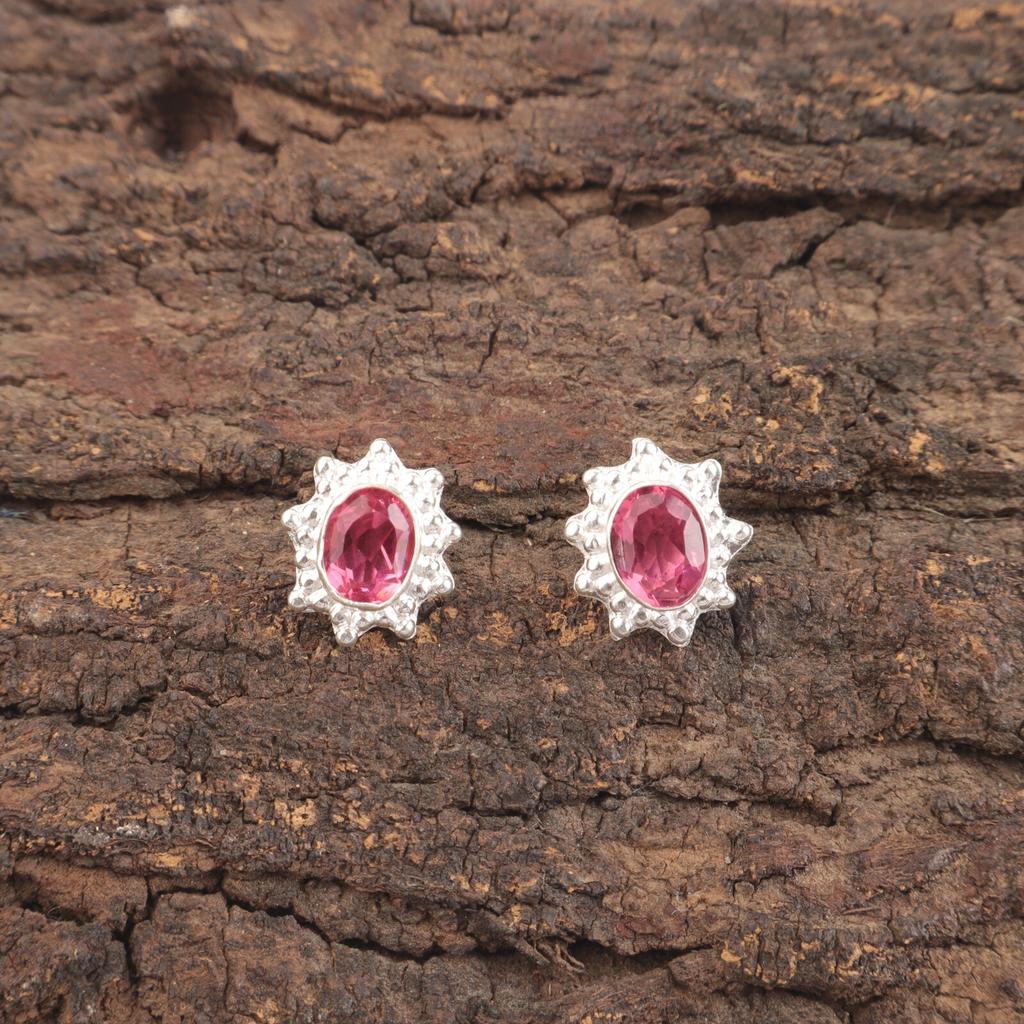 Naturlig Rosa Turmalin Ädelsten 925 Sterling Silver Smycken Örhängen 0,54" EE-151-3