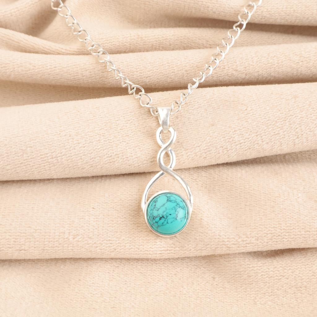 Naturlig Blå Turkos Ädelsten 925 Sterlingsilver Smycken Hänge Halsband CP-25-30