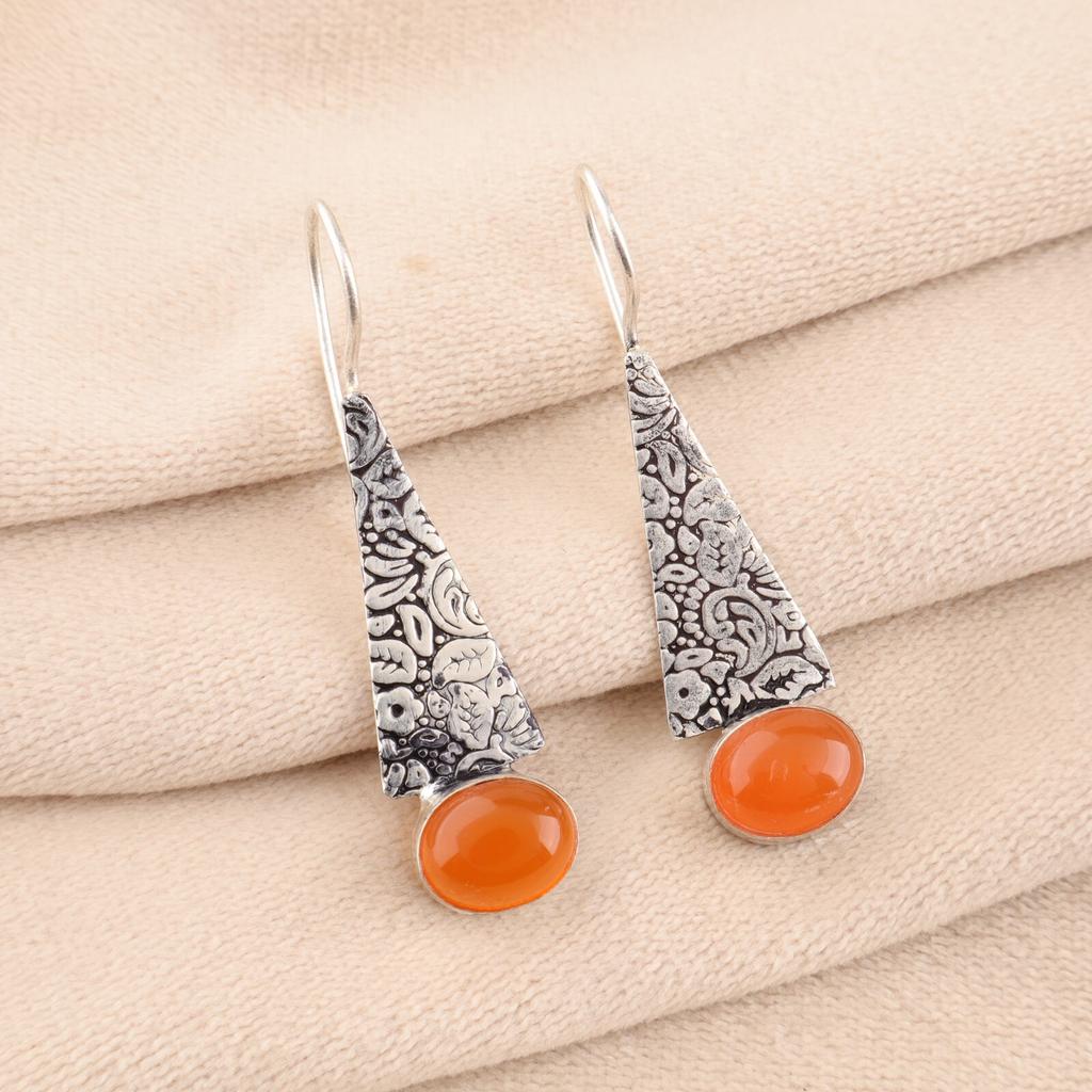 Natural Carnelian Gemstone 925 Sterling Silver Jewelry Handcrafted Earrings 1.9" EE-165-22
