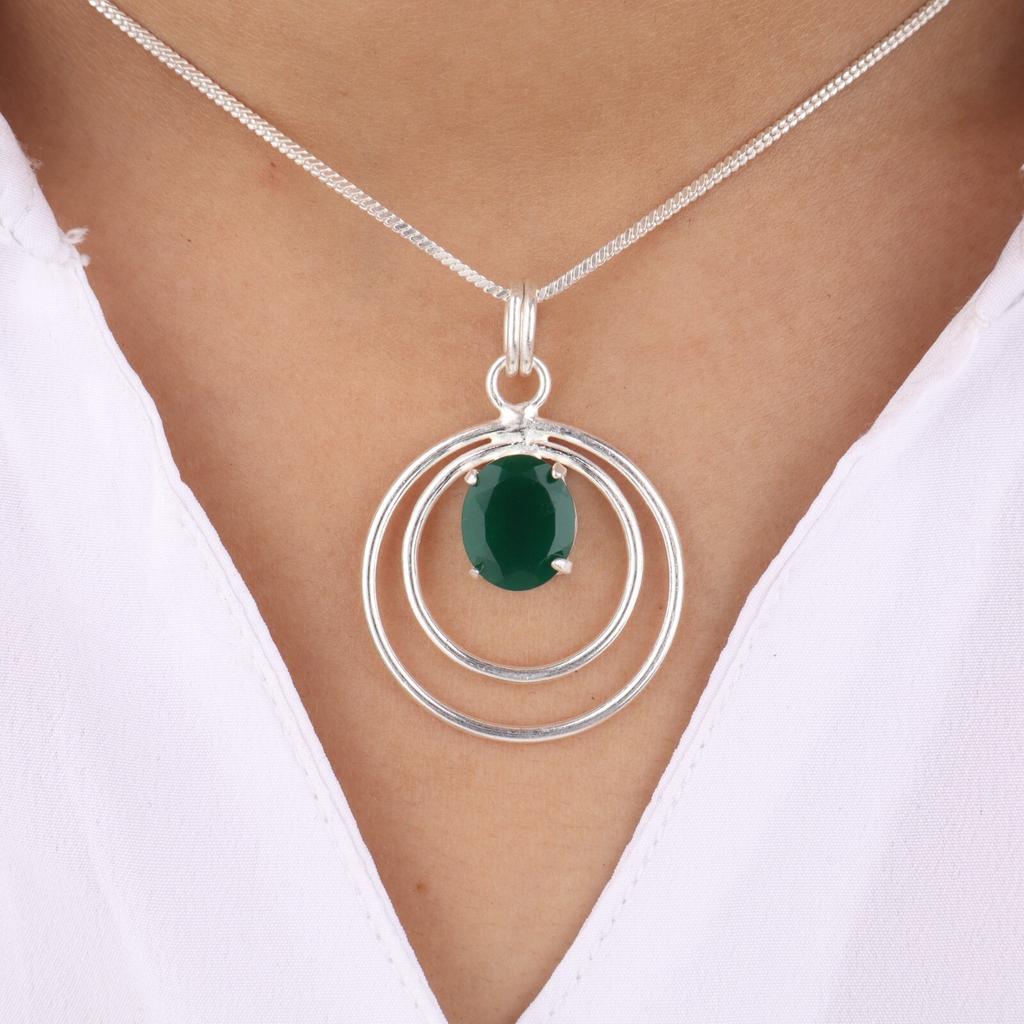 Green Onyx Gemstone 925 Sterling Silver Jewelry Women's Pendant Gift For Mother PP-61-17