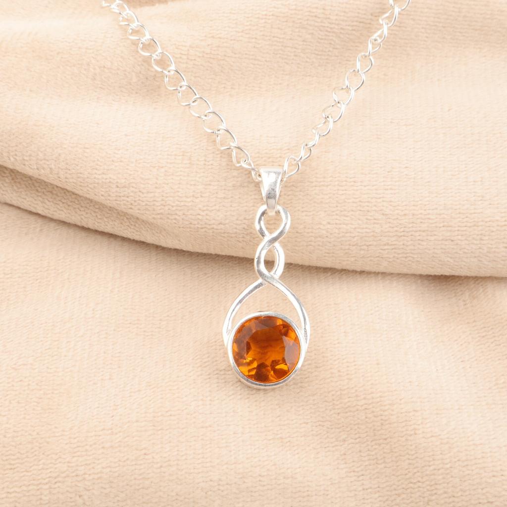 925 Sterling Silver Smycken Citrin Ädelsten Handgjord Oändlighetshänge för Kvinnor CP-25-1
