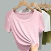 Lyft din sommargarderob med denna avslappnade T-shirt, skapad för ultimat komfort och stil.. Denna topp är tillverkad av högkvalitativ bomull och erbjuder en andningsbar och mjuk känsla, perfekt för varma dagar.. T-shirten har ett klassiskt enfärgat mönster, korta ärmar och rund halsringning, vilket gör den till ett mångsidigt tillskott till vilken outfit som helst.. Oavsett om den kombineras med jeans, shorts eller en kjol, förenar den utan ansträngning mode och funktion för en avslappnad look.