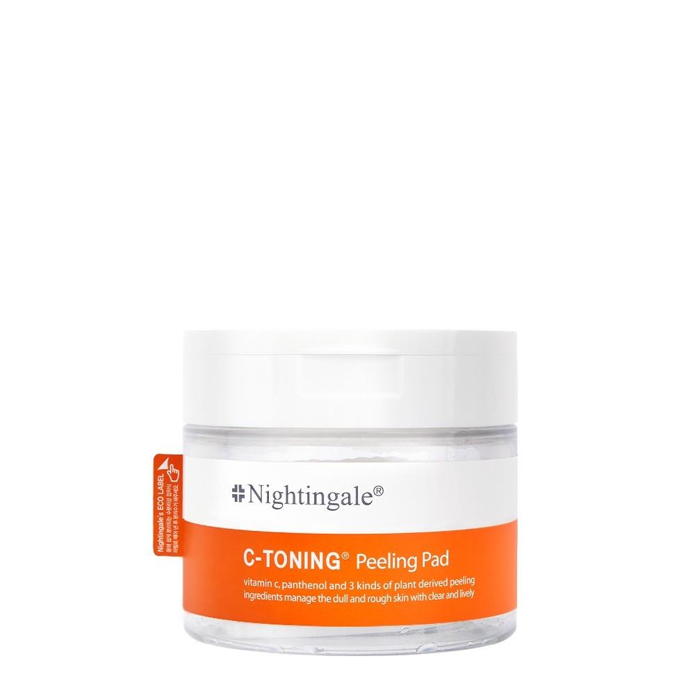 C-Toning Peeling Pads, 60 sheets, contain ingredients such as purified water, niacinamide, 1,2-hexanediol, sea buckthorn oil, gluconolactone, and hydroxyacetic acid. This product gently exfoliates and helps refine skin texture.