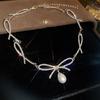 Elegant Rhinestone Bow & Pearl Clavicle Necklace - Versatile Luxury Choker Accessory
