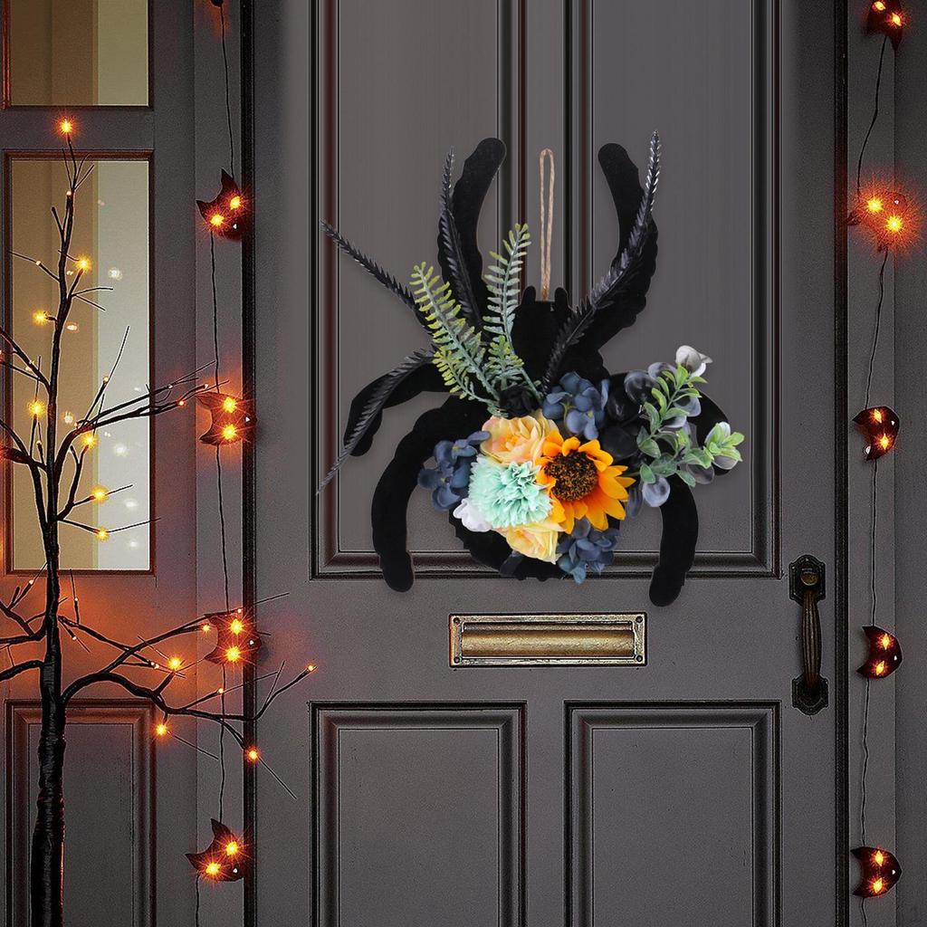 - 【Design】: This Halloween wreath features an adorable and fun spider design, accented by artificial flowers and leaves, creating a lively and vivid decoration for holiday