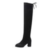 Höga klackar tunna stövlar höst och vinter nya spetsiga tjockklackade fleece elastiska stövlar remmar fashionabla knähöga stövlar