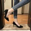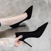 Damhögklackade skor kvinnlig student koreansk version vår och höst nya damskor spetsiga mångsidiga svarta arbetsskor stilett