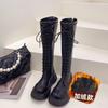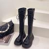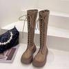 Stövlar Damstövlar Nytt på hösten och vintern Vita Plattformstövlar Fleece Snörning Höga Martin-stövlar