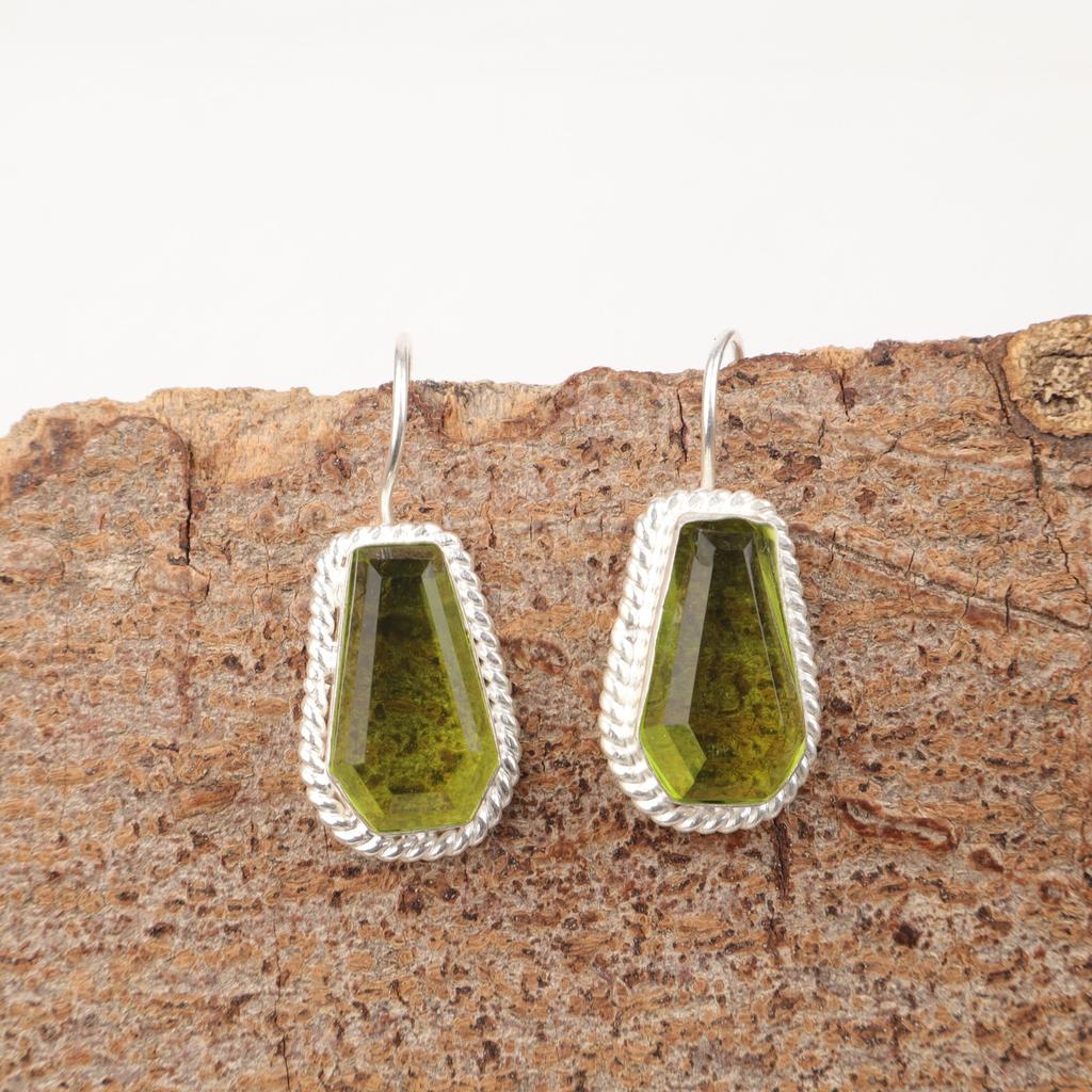 Peridot Stone Sterling Silver Handcrafted Hook Drop Best Sisters Gift Earrings EE-137-7