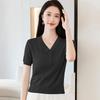 V-neck Ice Silk Short Sleeve T-Shirt Women Summer New Fashion Slim Fit Hollow Out Knitted Short Top