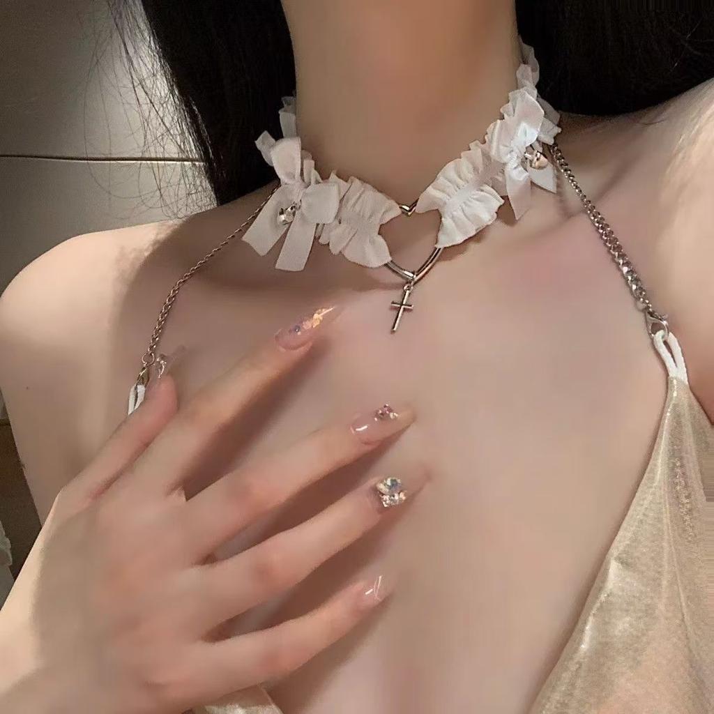 PU-läderhalsband med kors Vintage läderhalsband