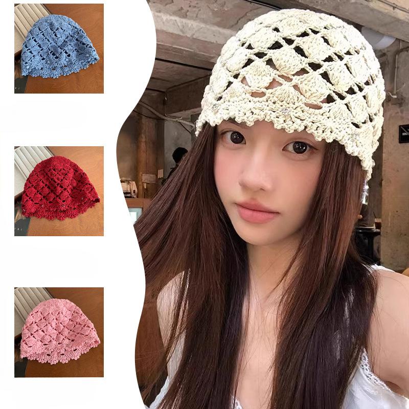New Versatile Hat Hand Woven Head Hat for Women Spring Hollow Cold Hat Thin Stacked Hat Pullover Hat