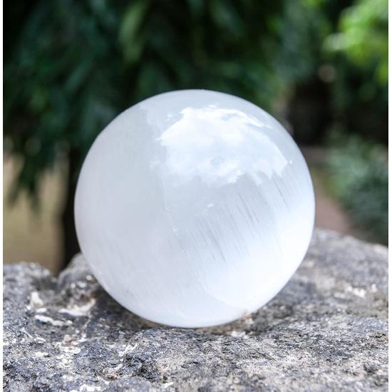 Crocon 55mm Selenite Stone sphere Ball with Metal Stand 1400+ Carats Gemstone Ball Healing Sphere Sculpture Figurine Photography Crystal Sphere