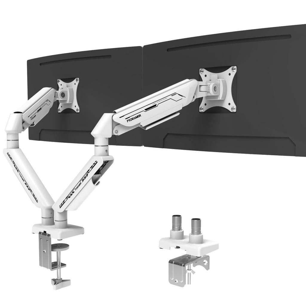 Fydeamer Dual Monitor 2 Compatible with Inch Curved PC LCD Display Gaming Monitor Gas VESA Standard Load Capacity Dual White Arm, Screens, 17-35