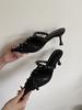 Temperament designkänsla tunn klack nit väska huvud halvtofflor damskor nya spetsiga högklackade sandaler