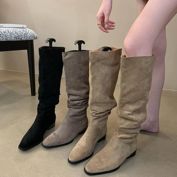 Rynkiga Stövlar Högklackade Stövlar Damklack Ridderskor Western Cowboystövlar Mellanhöga Stövlar