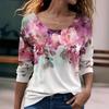 Casual Versatile Fashion Trend Flower Pattern Women's Long Sleeved T-shirt
