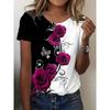 Sommar Rundhalsad 3D Rosmönstrad Topp Trendiga Casual Kortärmade T-shirts för Kvinnor