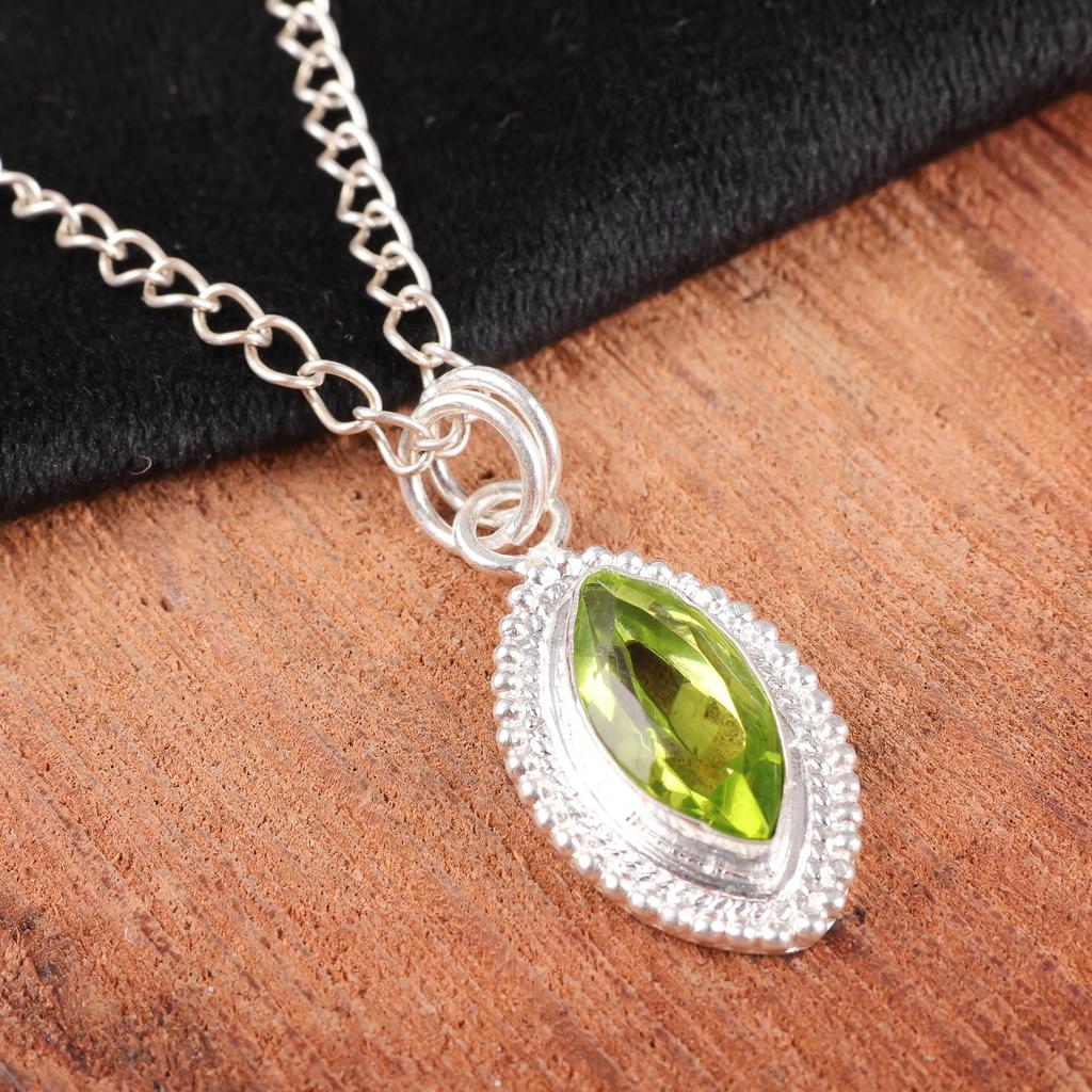 Peridot Smycken, 925 Massivt Sterling Silver Ädelstenshänge, Handgjorda Fina Smycken Gåva Till Henne