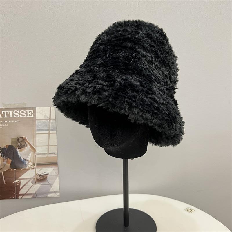 Tjock varm fluffig bucket-hatt i imiterad mink, höst- och vintermode, söt bucket-hatt