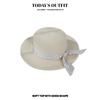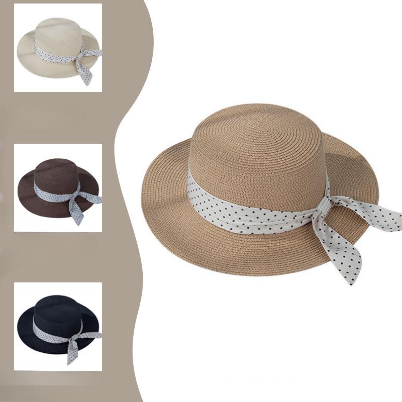 Sommarlov Platt Topp Stråhatt Rutig Rosett Stråhatt Kvinnor Vår Strand Solskyddshatt