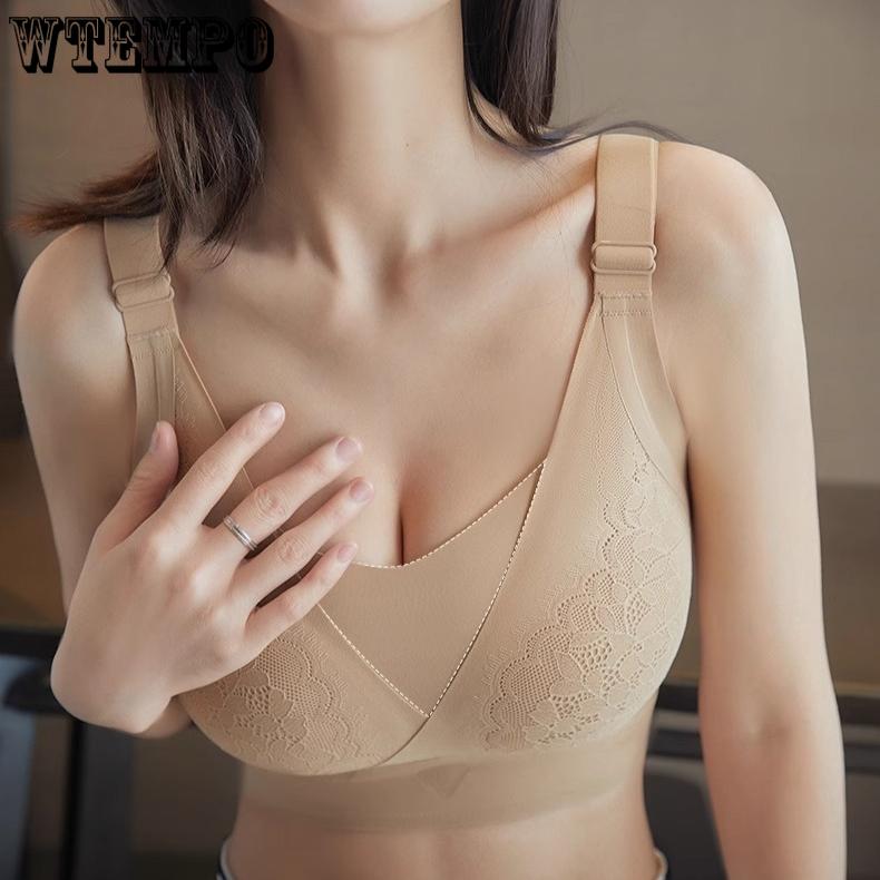 Justerbar BH Dam-BH Fullkupa Lätt och Sömlös BH Samlad Stor Storlek Anti-häng-BH