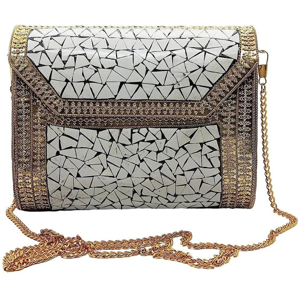 White Women Clutch Antique Indian Handmade Square Mosaic Metal Bag Women/Girls Bridal Metal Clutch