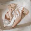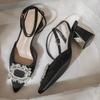 Ankelrem Kristallsandaler Kvinnor Spetsiga Skor Höga Klackar Sandalias De Mujer Glänsande Damer Strass Fyrkantiga Klackpumpar