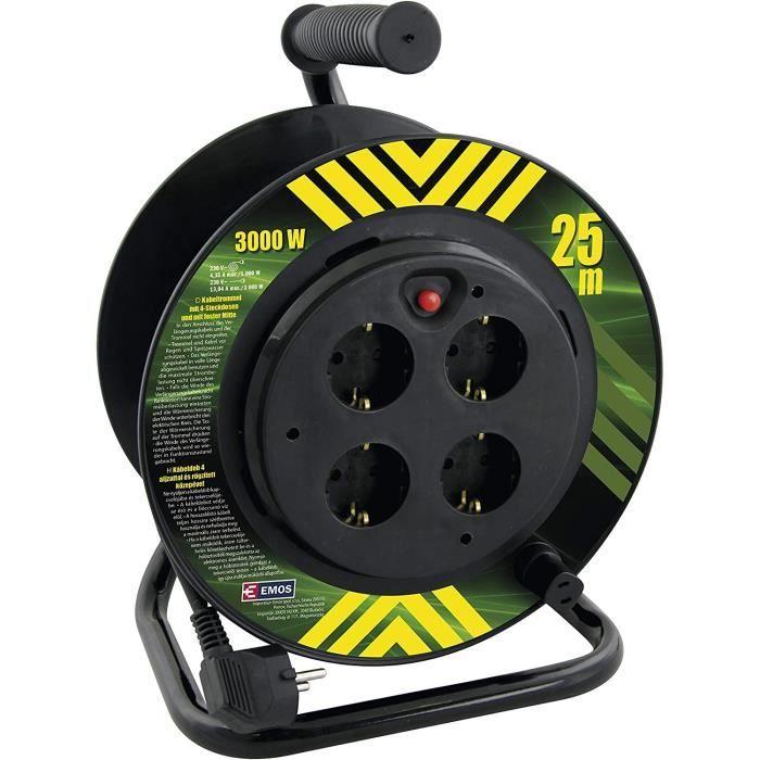 Enrouleur de câble - emos - 25 m - 4 prises schuko - 1,5 mm - intérieur ip20