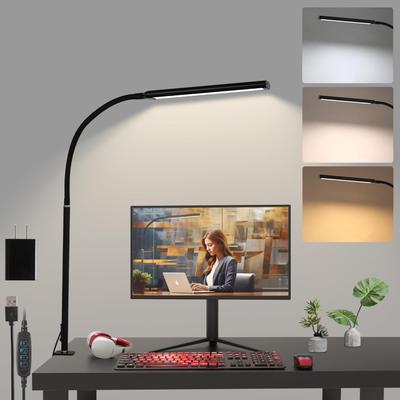 LED-bordslampa, Klämlampa, 1300LM, Ultraljus, Mjuk Ljusteknik, Ljusstark men Inte Bländande, USB-driven, 3 Färgtemperaturinställningar, 10 Ljusstyrkenivåer